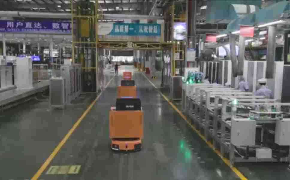 为车载冰箱物流配送打造的智能解决方案,,包含产中物流通过潜伏举升AMR搬运至线边,,,产后成品物流智能仓储,,,,流程包含产中物流智能齐套入库,,线边安灯叫料AMR智能配送至线边,,成品入库、、、、出库,,,通过无人堆高车机器人,,,,智能仓储管理替代人工作业管理,,,,实现更高存储、、、、更高效率、、、、更具柔性化的解决方案。。。
